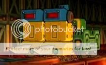 As Sakura gets a chance to regain her bearings, Garland presses his attack on Little Brother, sending bolts of electricity sparking across the construction vehicle's body, lightning bolts searching for nooks and crannies to worm into. Little Brother is on the defensive, driving backwards and belching smoke.